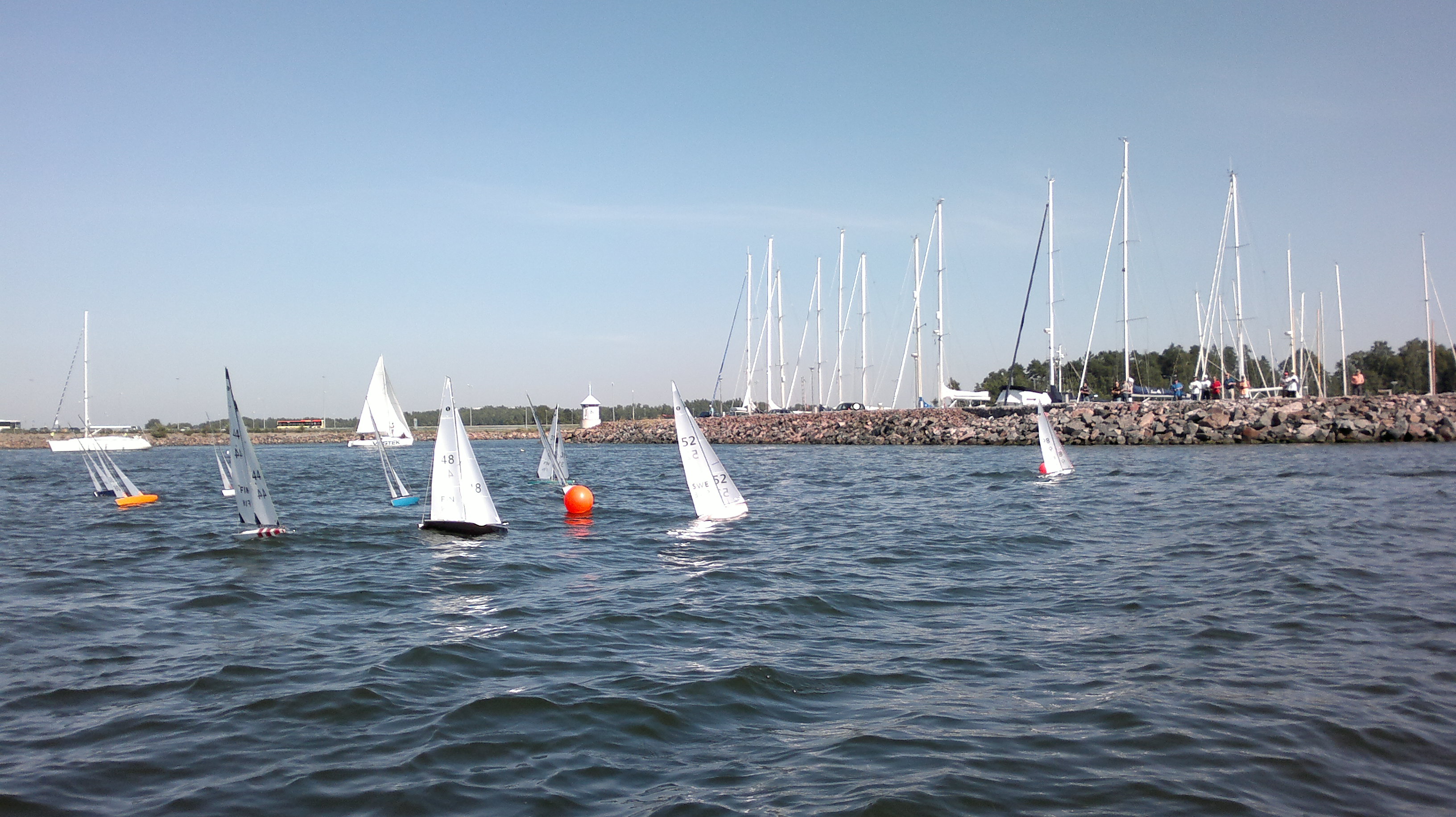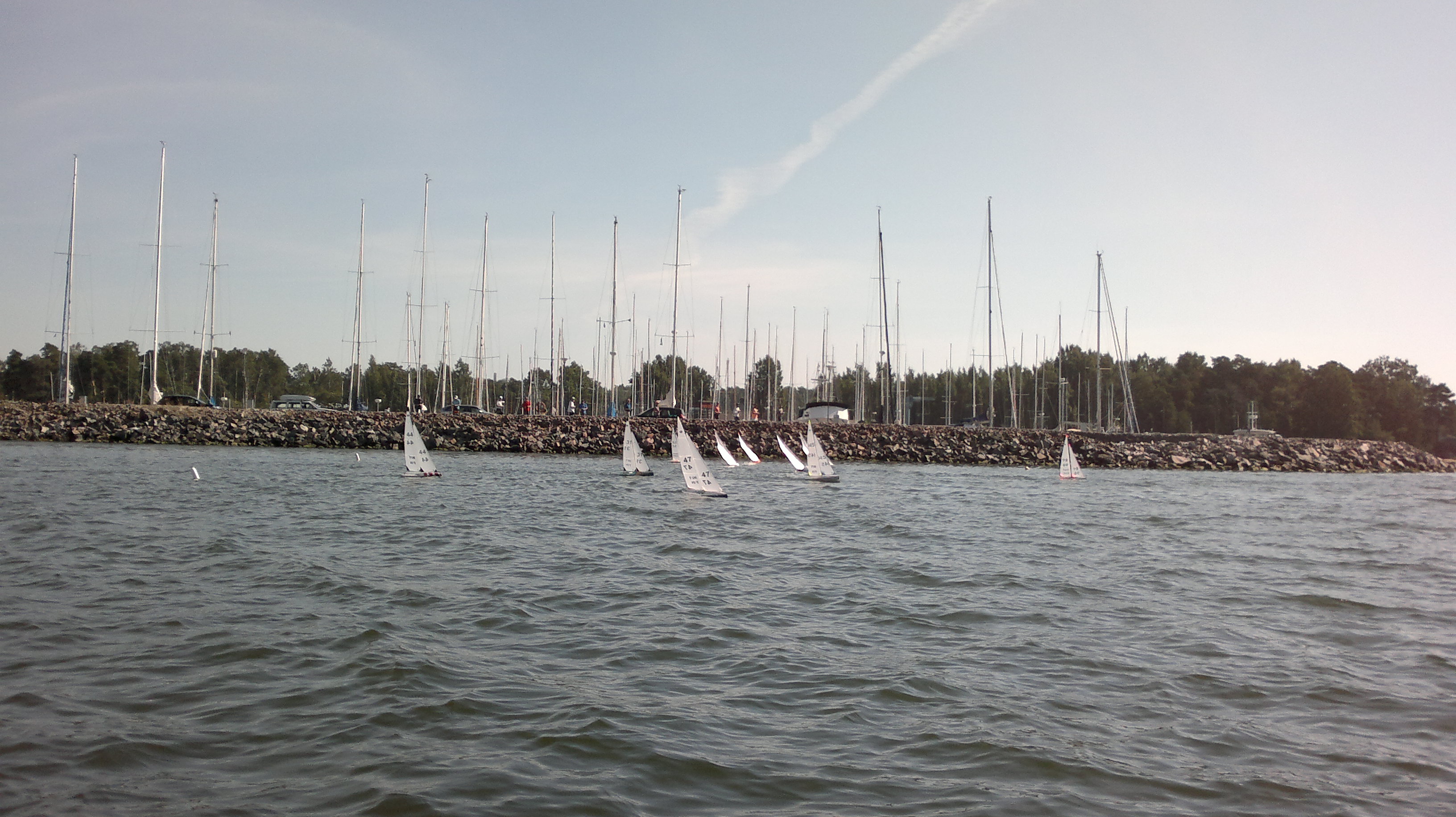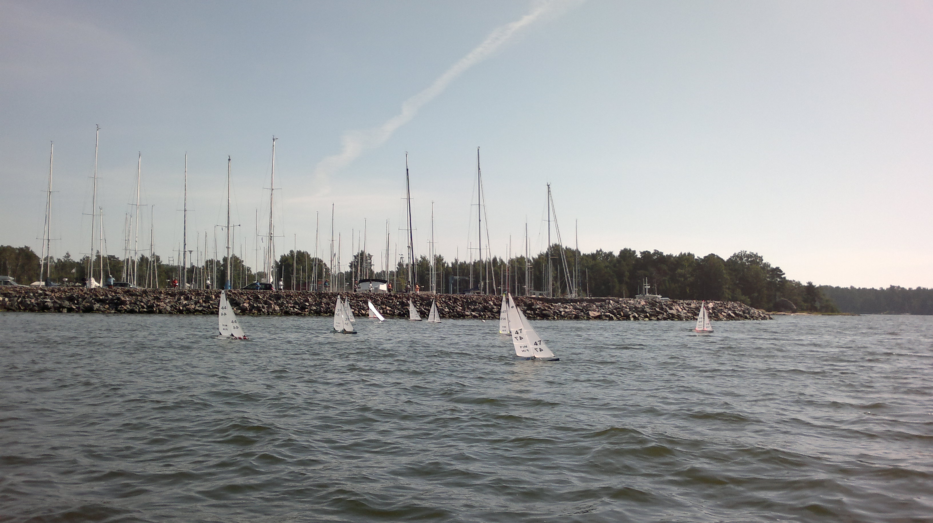 11 boats (7 FIN + 4 SWE) gathered at NJK/Björholmen for the second 2011 Scandinavian Cup IOM race. 12 races were completed in light to moderate no1 rig wind. It was decided to change venue to KVL/Espoo for Day 2 tomorrow Sunday.