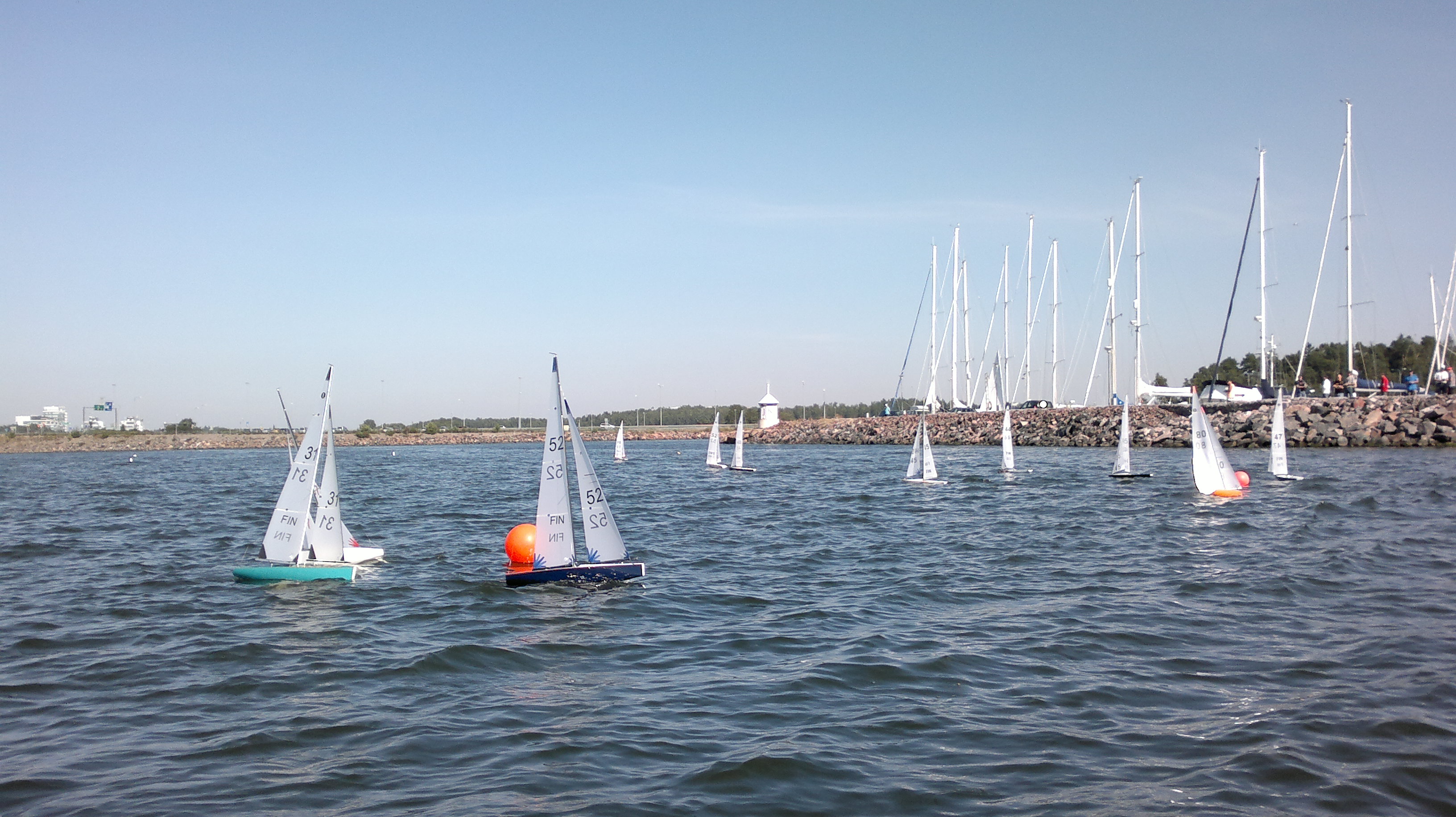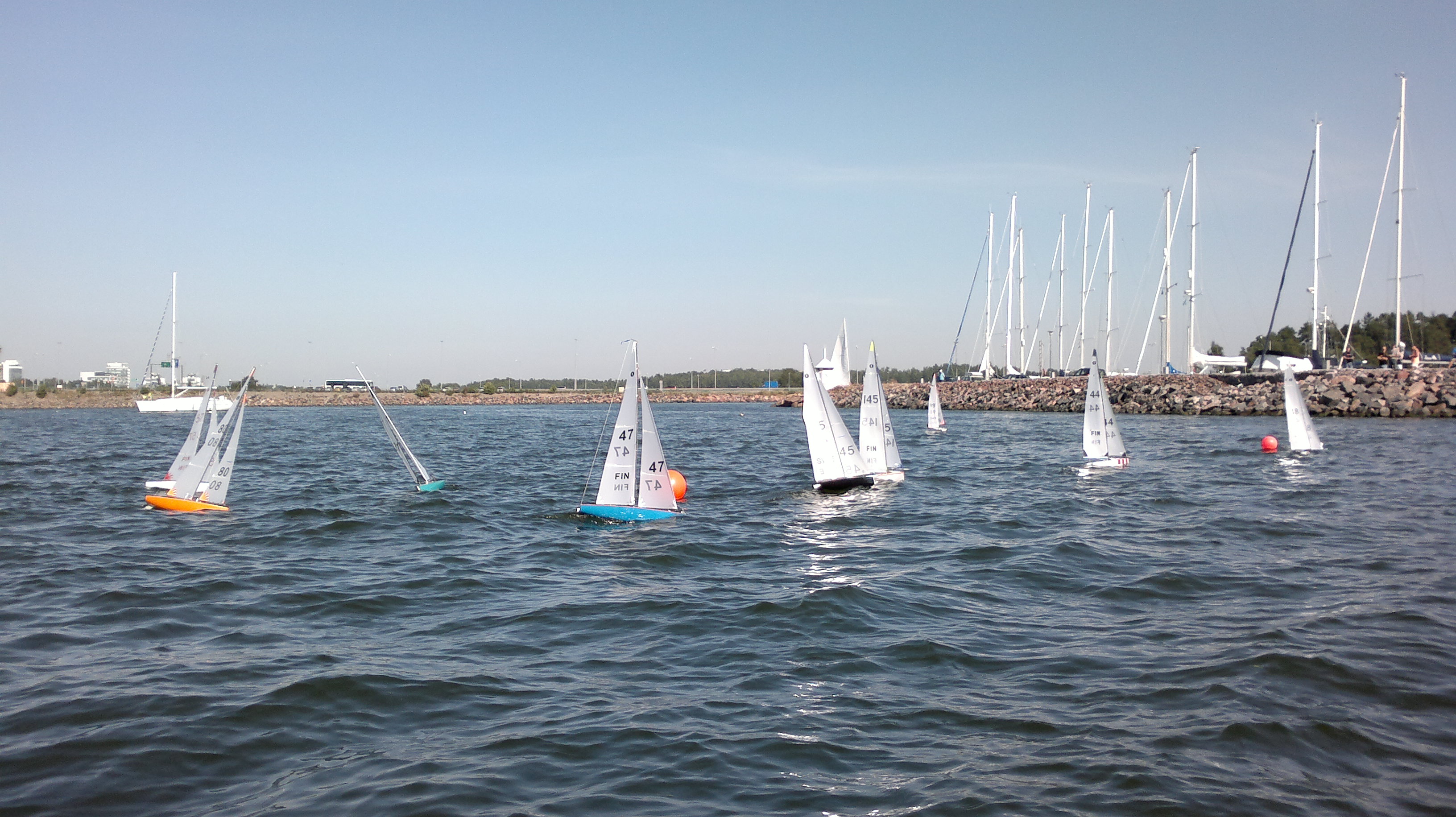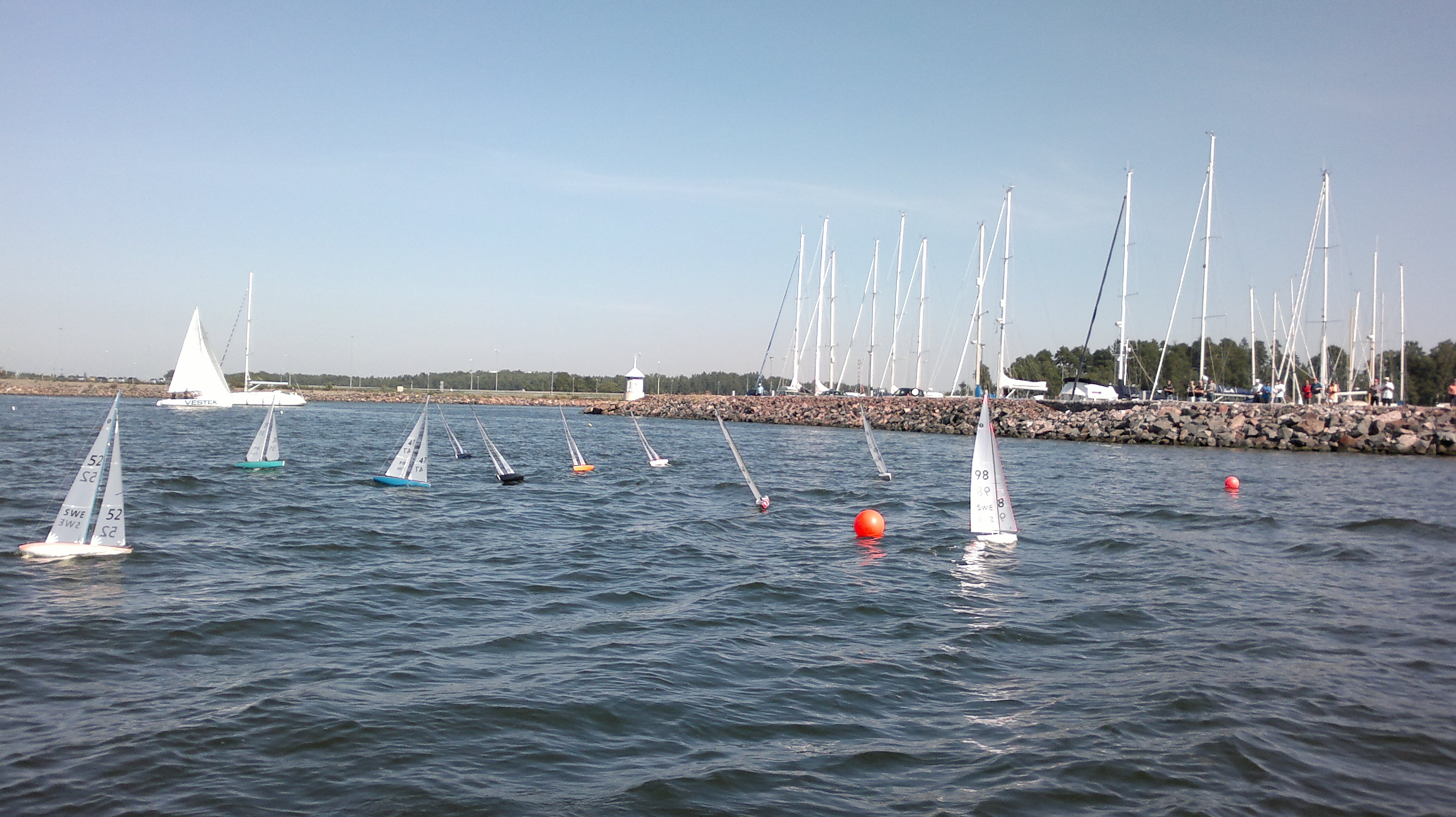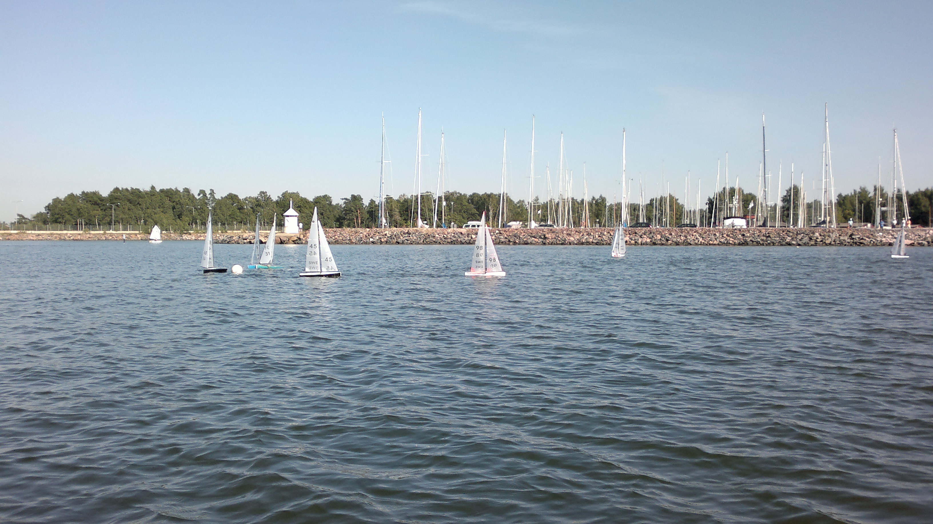 11 boats (7 FIN + 4 SWE) gathered at NJK/Björholmen for the second 2011 Scandinavian Cup IOM race. 12 races were completed in light to moderate no1 rig wind. It was decided to change venue to KVL/Espoo for Day 2 tomorrow Sunday.